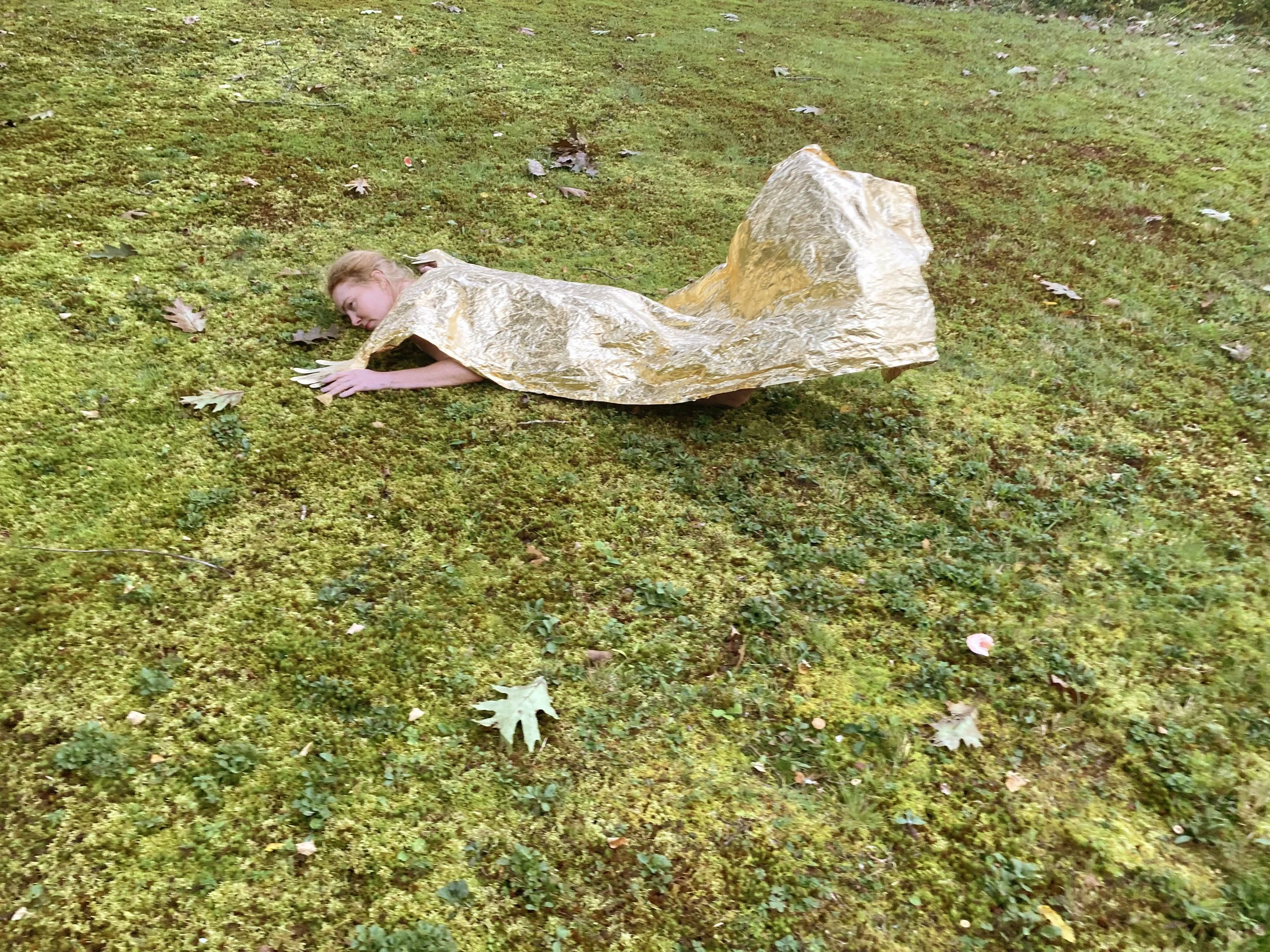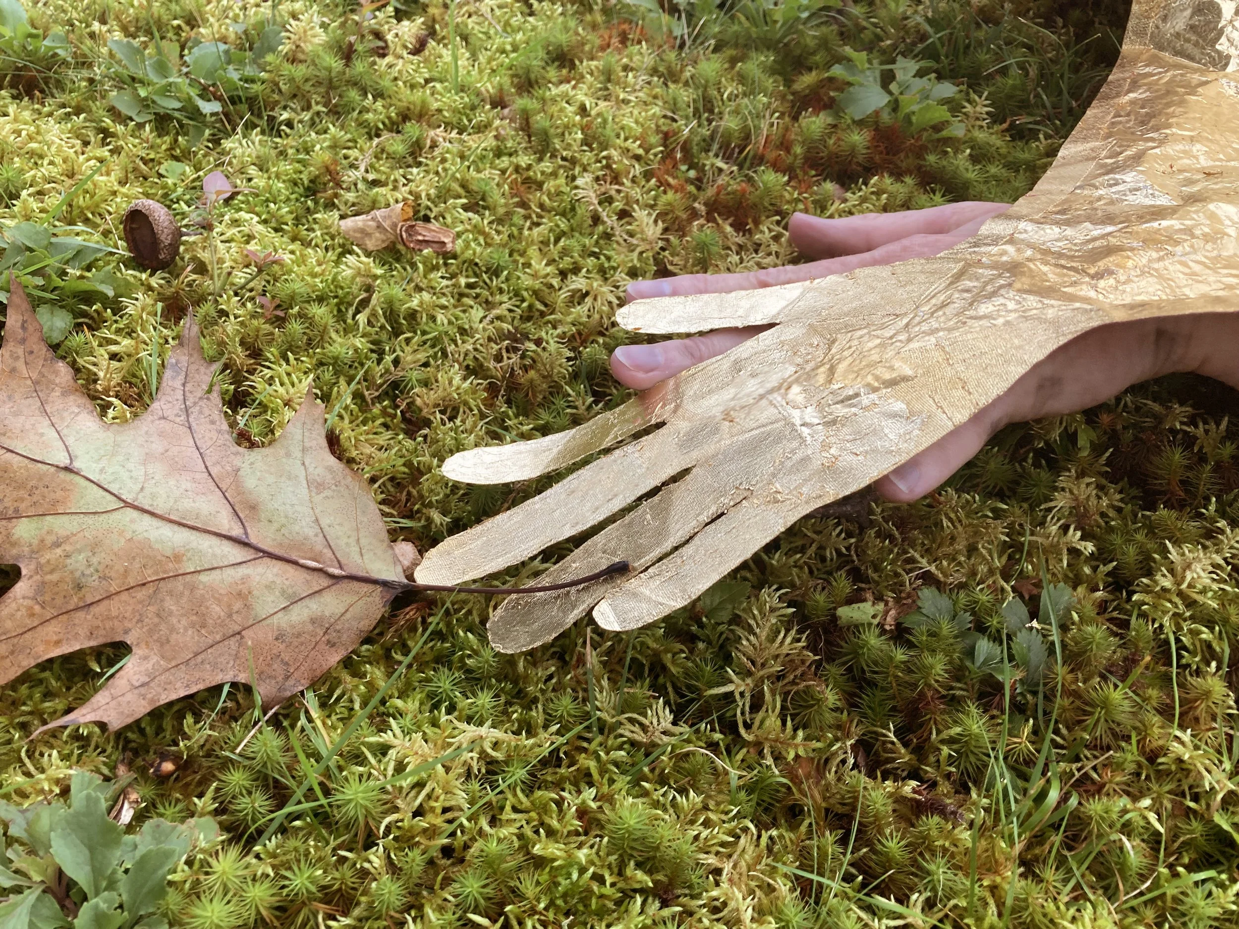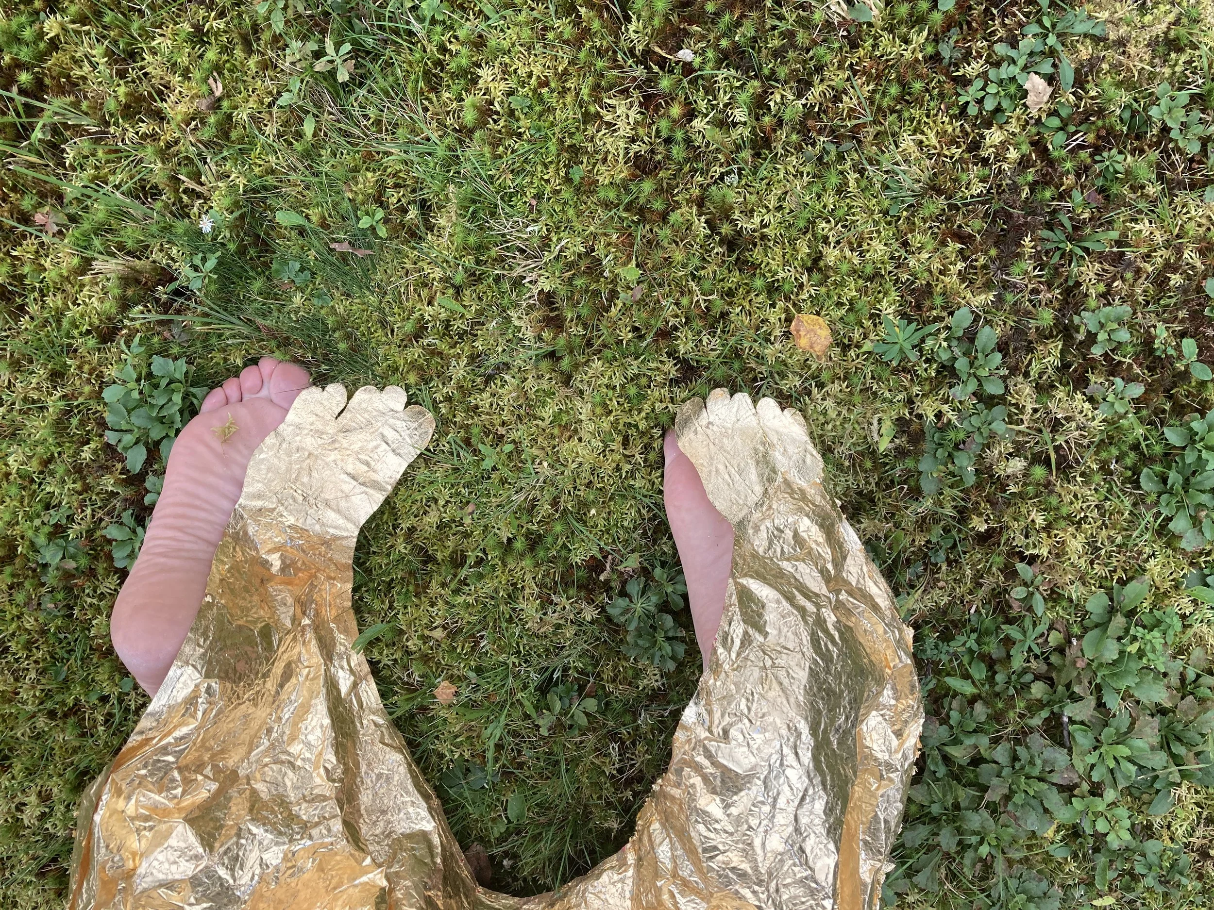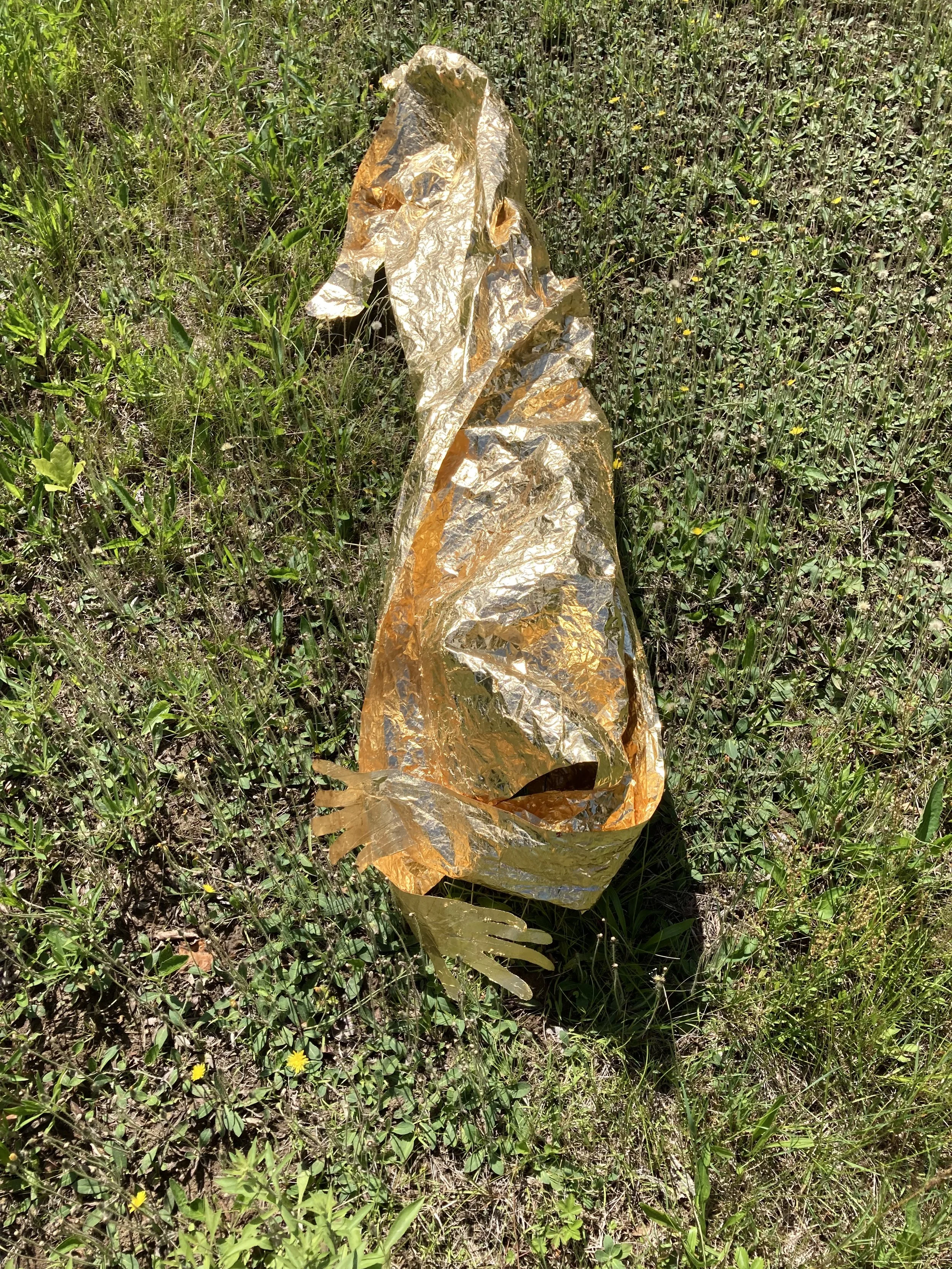 Golden Skin, mylar, composite gold leaf, gold size, cloth tape, 2021